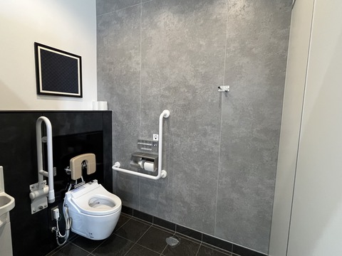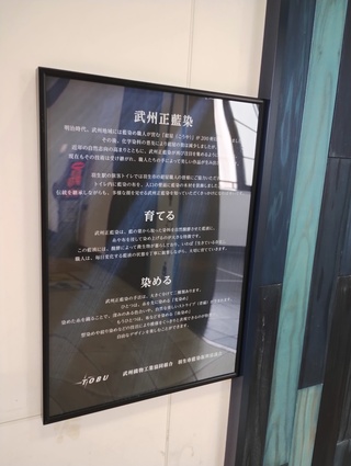 入口の壁面には藍染の木材を装飾し、お客様用トイレの内部には藍染の布を設置するなど、職人の皆様の技による多彩な表現をご覧いただけます。また、入口付近には“武州正藍染”の紹介パネルを設置し、訪れる方々へ地域文化の魅力を発信しています。