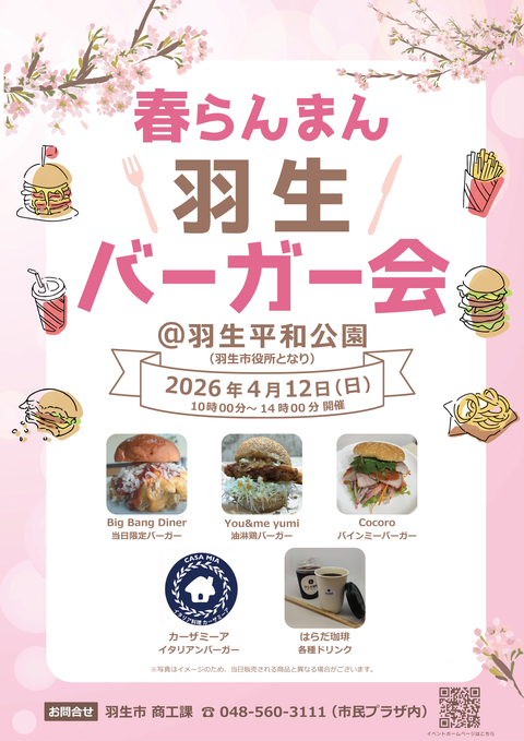4月12日(日)「春らんまん!羽生バーガー会」を開催します!