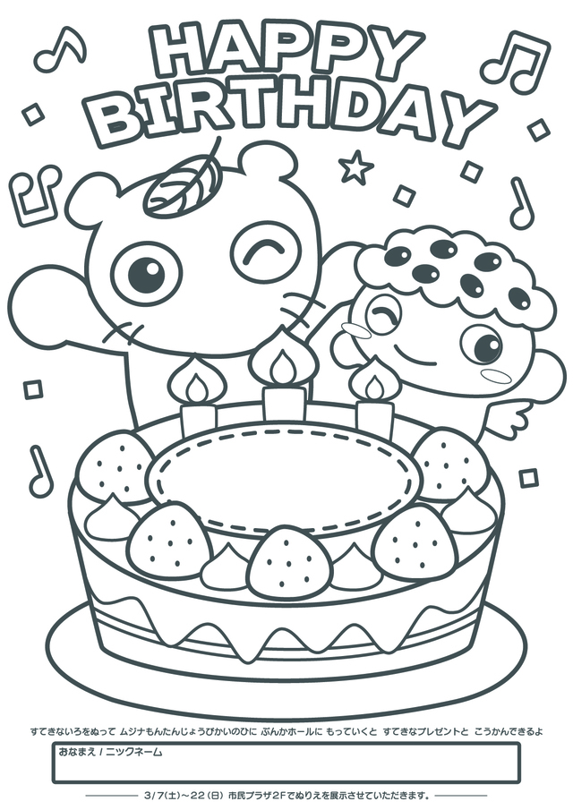 提出いただいたぬりえは、3月7日(土)~3月22日(日)の期間で、市民プラザ2階(羽生市中央3-7-5)にて展示を行います。