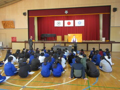 3学期の始業式も体育館に参集し、開催しました。