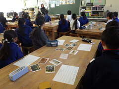 授業内容は、絵の鑑賞「場所に合った作品を選ぼう」です。