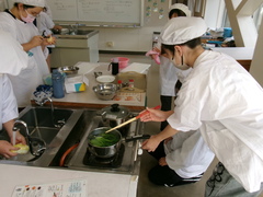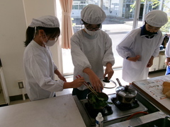 ゆで野菜の調理実習では、小松菜とじゃがいもを茹でました。
