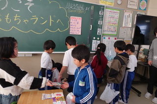2年生の生活科「おもちゃランド」に招待してもらい、おもちゃで遊びました。