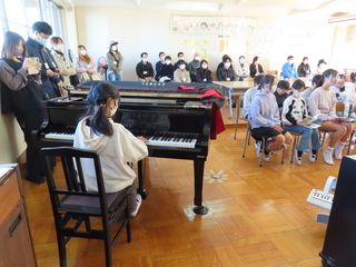 12日(水)「羽生市内小中学校音楽会(5年1組)」と19日(水)「東部北地区音楽会(5年2組)」に出演する5年生が、在校生に向けて発表を行いました。力強い楽器の響きや息の合った演奏に、体育館から大きな拍手が送られました。