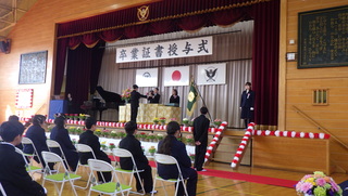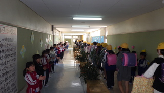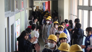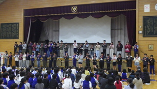 「卒業生見送り式」が行われました。在校生が花道をつくり、これまでお世話になった卒業生一人一人に感謝の気持ちを込めて見送りました。少し照れくさそうに歩く卒業生の姿や拍手で「おめでとう」「ありがとうございました。」と言った温かい声に包まれる様子から、これまでの学校生活のつながりや思い出の深さが感じられました。