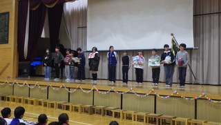 これまで南小をリードしてくれた6年生へ、感謝の気持ちを込めて各学年が出し物やメッセージを準備しました。寸劇や歌、ダンスなど、どの学年も工夫をこらした発表で、体育館は笑顔と温かい拍手に包まれました。6年生も下級生からの気持ちのこっもった発表を嬉しそうに見ていました。6年生からもお礼の言葉や合奏、合唱があり、在校生にとっても心に残る時間となりました。