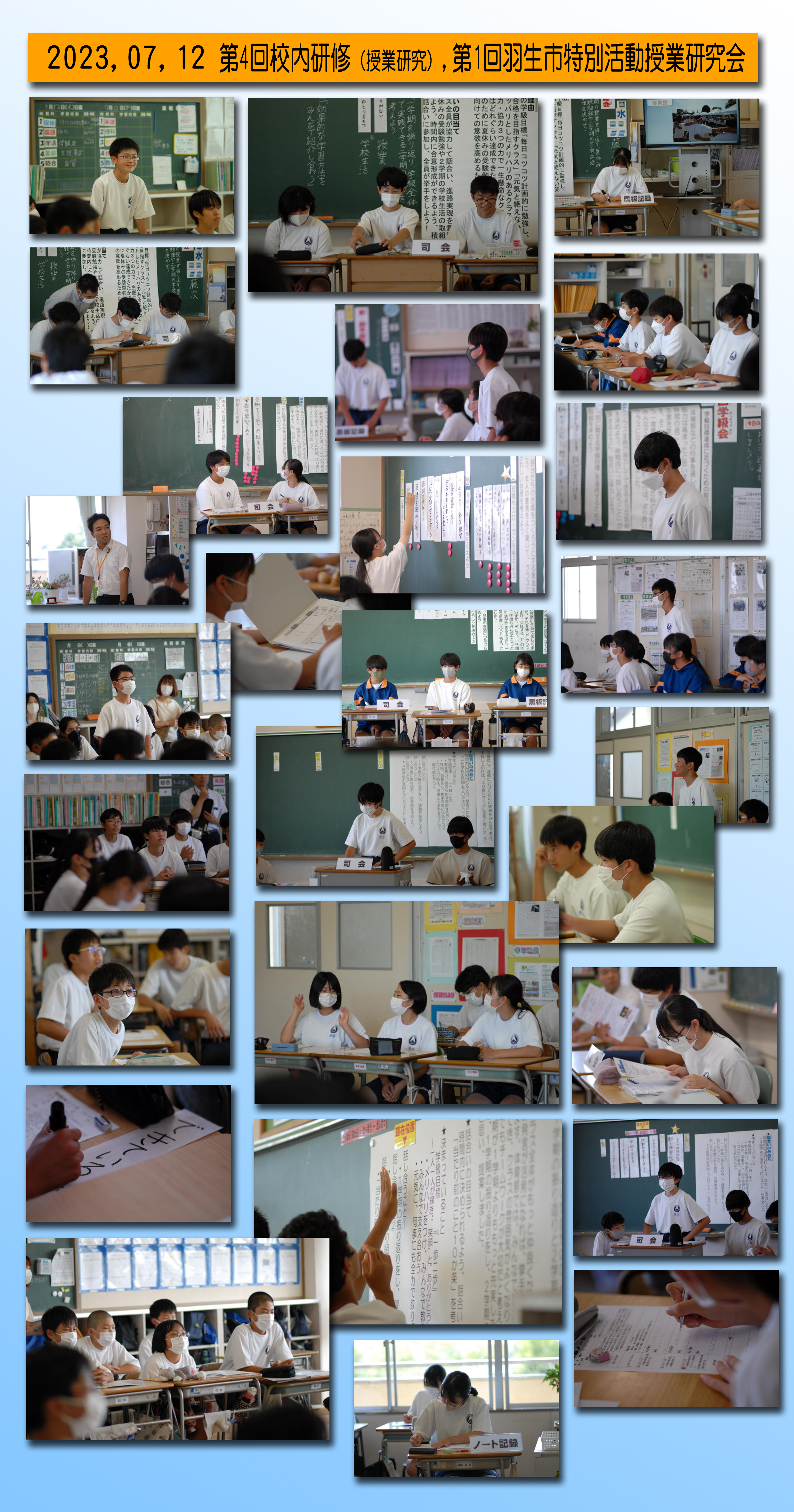公開日 2023年10月30日 13時00分 令和4・5年度 埼玉県特別活動研究会、羽生市教育委員会・羽生市教育研究会委嘱 「個を生かし、主体的に生きる力を育む特別活動の推進」写真記録 埼玉県羽生市立東中学校 令和5年度の取組の様子 令和4年度の取り組みの様子