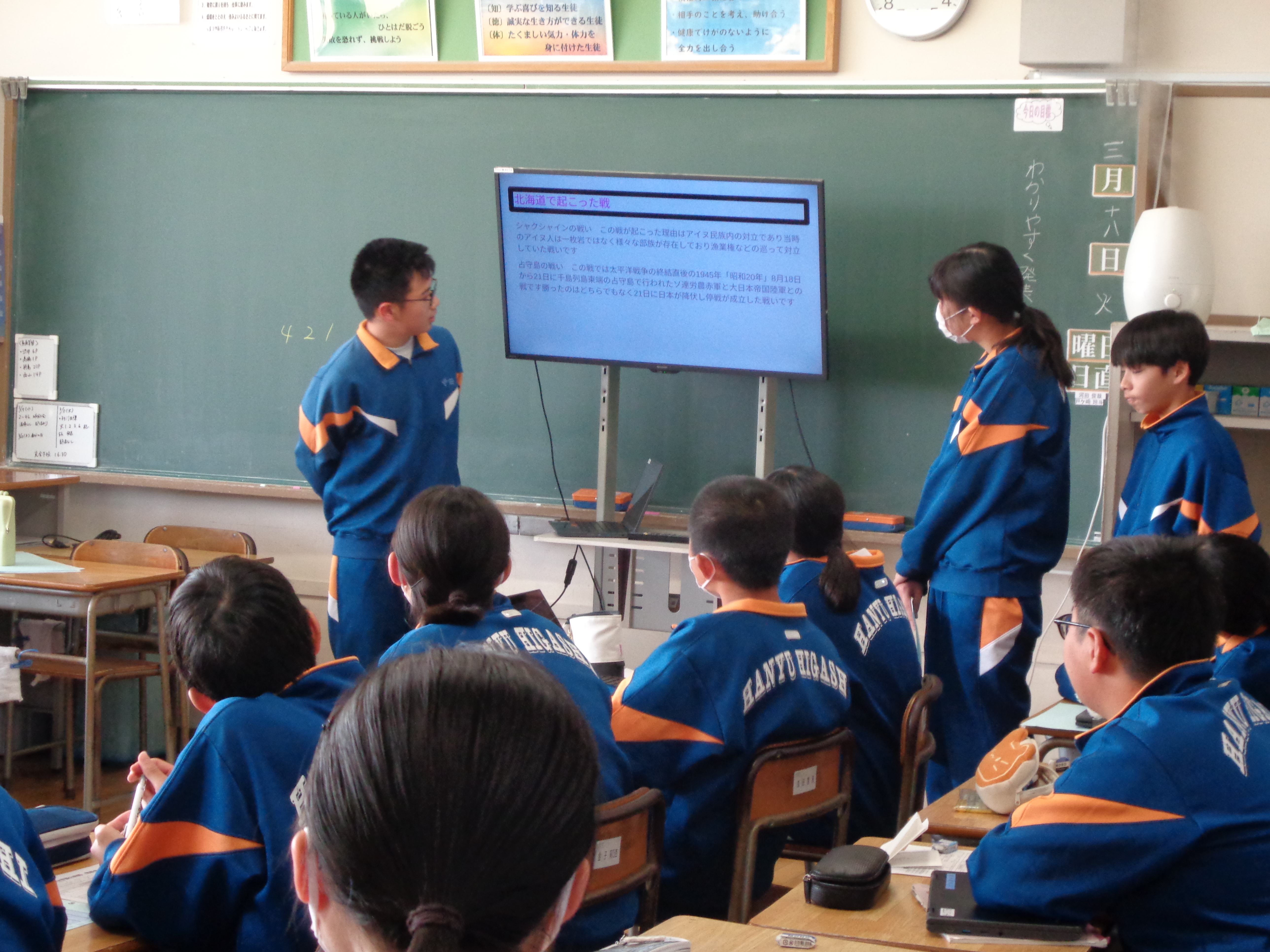 本日の5時間目、2年生は修学旅行説明会、1年生は総合の発表会を行い、その後、学年末保護者会が行われました。