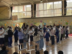 卒業式準備が着々と進んでいます。代表委員の児童は20日(月)在校生門出の練習をしました。放課後は、体育館のワックスがけを行いました。