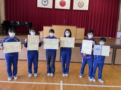 予行後に、6年生の表彰を行いました。