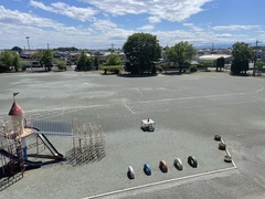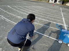 新体力テストの時期になりました。放課後先生たちでボール投げの線の溝を掘り、ラインカーで線を引きました。