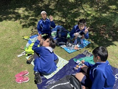 外で体育をする際の水筒置き場や机を青鹿先生に作成していただきました。