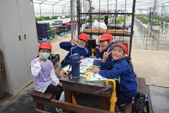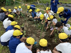 4年生の理科ではヘチマを育てています。発芽から成長し、農園に植え替えをしました。
