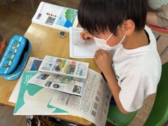先日4年生は社会科見学で、川の博物館に行きました。週が明けて19日(月)に早速新聞づくりをしていました。