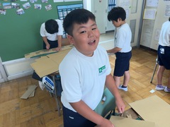 5年生の図画工作科では段ボールを使い、立体作品を制作中です。
