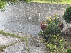 28日(木)の夕方、ゲリラ雷雨が発生しました。発達した積乱雲の影響ですぐに大雨になり、激しい雷でした。なかには雹も混ざってました。