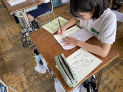 8日(木)の2時間目に校内硬筆競書会をしました。本番用の紙に留めや払いを意識して書きました。