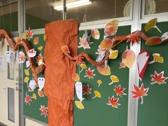 ひまわり教室前の掲示が変わり、秋になりました。