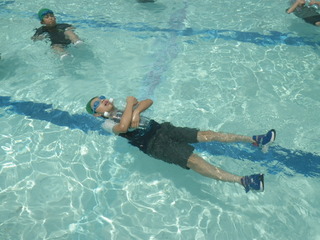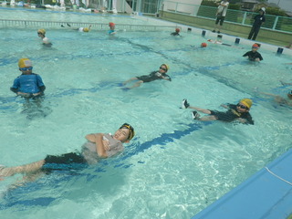 4・5・6年生が、着衣水泳を行い、水の事故から自分の命を守るための方法について考えました。着衣のまま水に入ると動きが鈍くなることや泳ぐことも体力が奪われて大変であることがわかりました。そして、身近なペットボトルを使った体を浮かせる方法や洋服を使った浮き方を学びました。