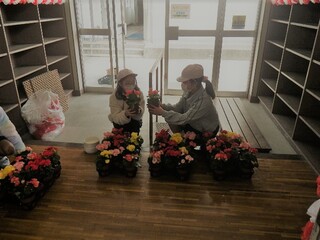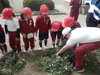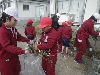 卒業を間近にした6年生が、1年生と共に、学校の花壇の緑化活動を行いました。どんどん草を抜いていく頼もしい6年生の姿を見て、1年生もがんばろうを草を抜いています。協力して活動した花壇は、とてもきれいになりました。