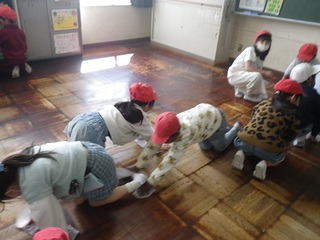 1年間の感謝の気持ちを込めて、教室や廊下、机などを掃除しました。隅々までほうきでゴミを集めたり、雑巾で床を拭いたりと子供達は一生懸命掃除をしていました。次にこの教室を使う仲間のために、きれいにしようとがんばっていました。