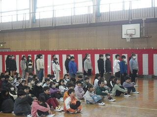 今日は、在校生から6年生へ、卒業を祝う会をプレゼントしました。6年間の思い出をクイズ形式で紹介したり、6年生のすごいところを劇やダンスを交えて紹介したりして、感謝の思いを伝えました。5年生は、児童会長から校旗を託され、最高学年になるという気持ちをより一層強めていました。6年生は、在校生へのお礼に歌を披露し、とても温かな時間となりました。