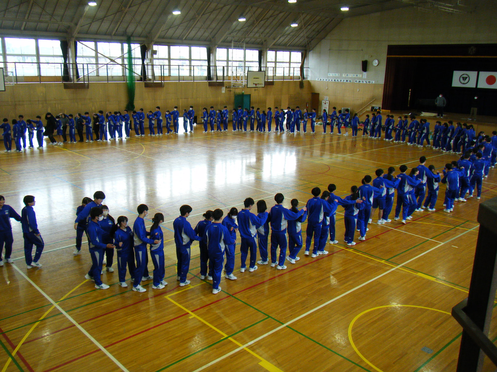 体育委員会企画による「PUT(Physical Up Time)」も、本年度最後となりました。3年生は、すでに半日授業ですので、今日は1・2年生のみでしたが、1年生企画により「じゃんけん列車&スクワット」で実施しました。