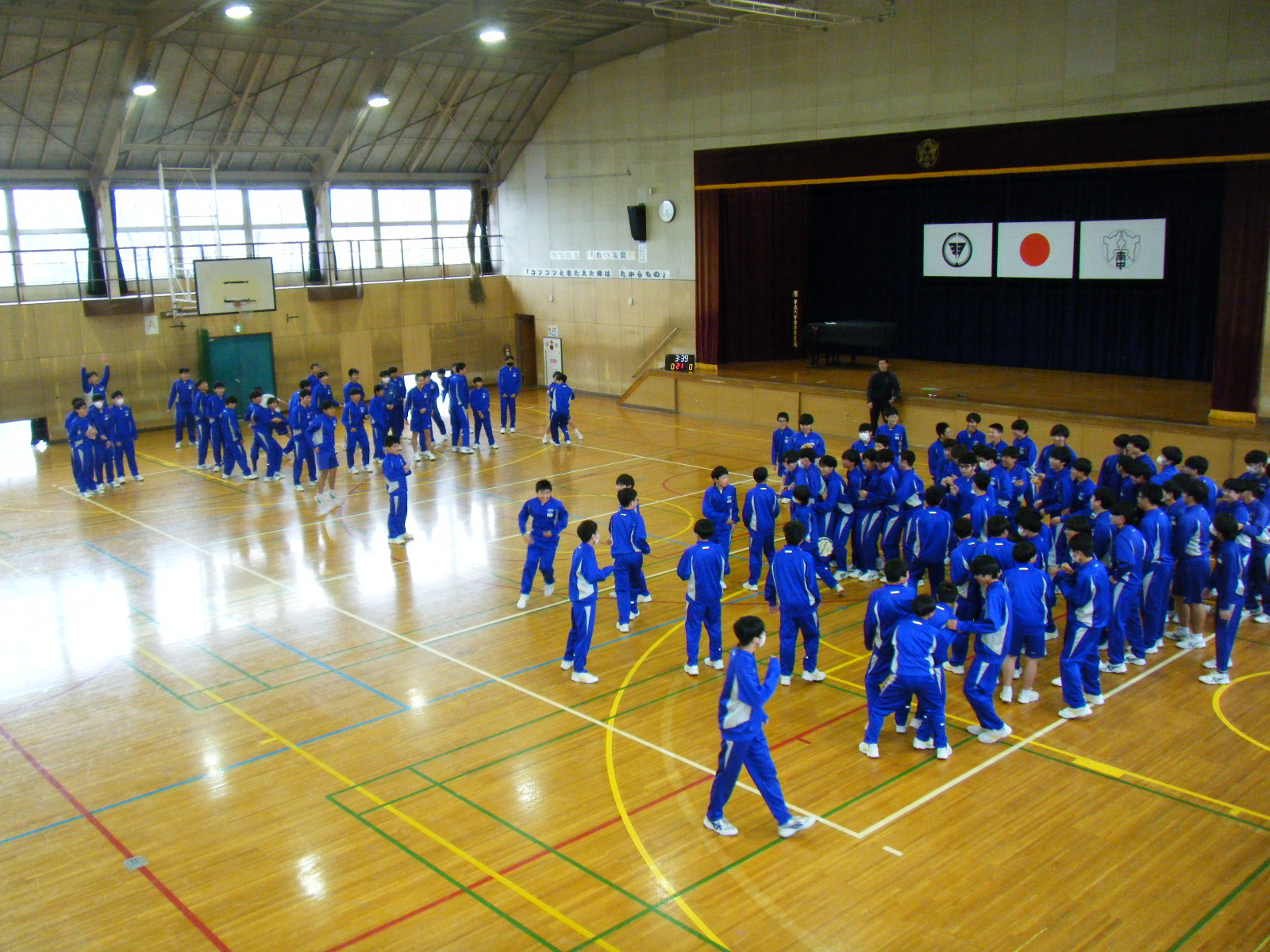 今日の1~4時間目には、3年生が体育館で、「スポーツフェスティバル」を実施しました。卒業式まで今日も含めてあと9日。様々な行事が、3年生にとって南中学校での最後のイベントとなります。時間のない中、体育委員や実行委員を中心に準備をし、クラスで団結して取り組みました。3年生の「クラスの団結」、「やるときには、やる」姿勢、「一生懸命」、「やさしさ」等、すばらしいところが光り輝く行事でした。担任の先生方も、一緒に楽しみ、思い出に残る行事となったのではないでしょうか。