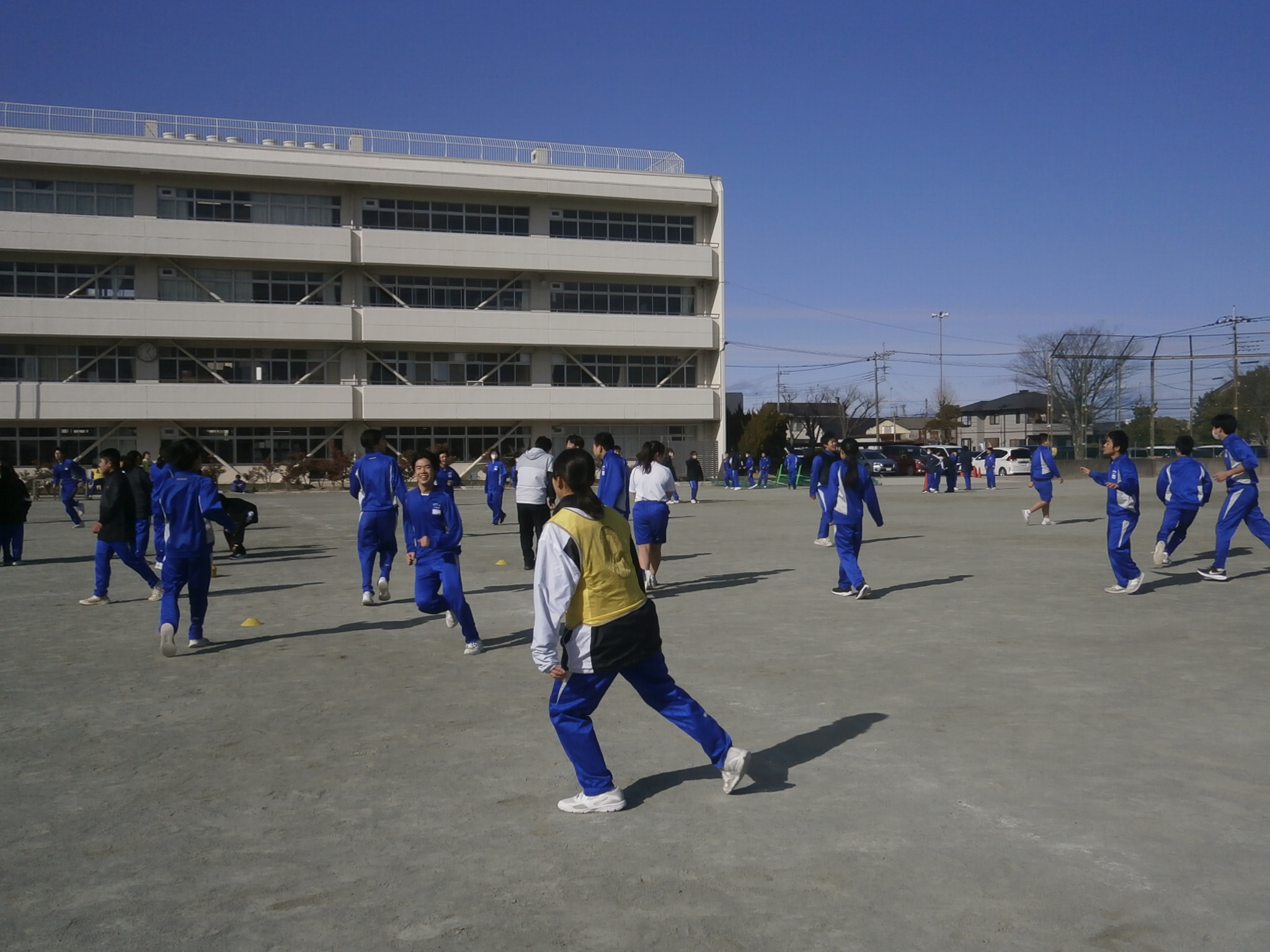 本日昼休み、1年生体育委員企画の「PUT(Physical Up Time)」が実施されました。風の冷たい校庭でしたが、多くの生徒が参加し(先生方の参加もありました)、動き回っていました。