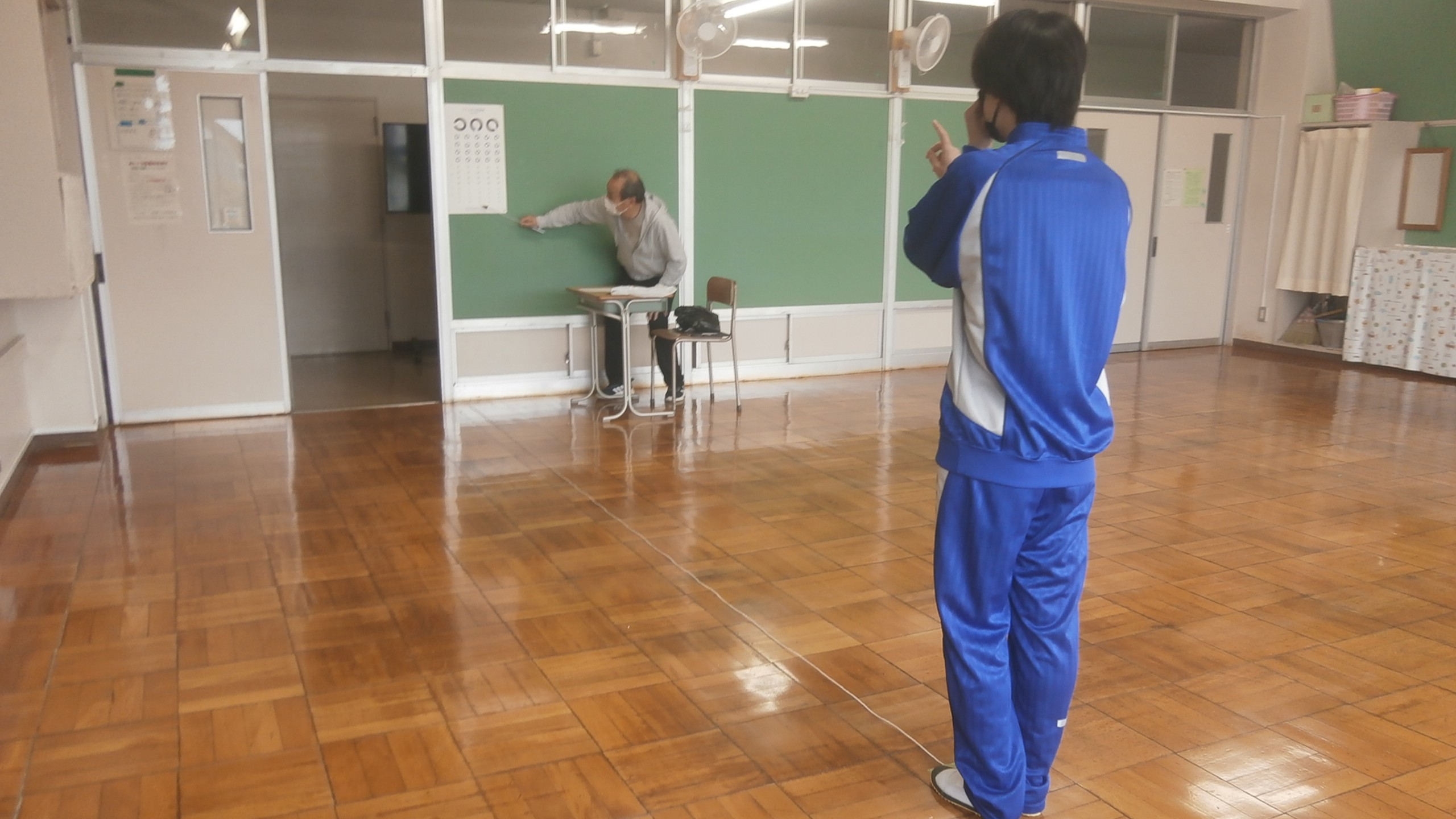 本日1校時から3校時の予定で、身体測定が行われました。身長、体重、視力、聴力(1,3年生のみ)を測りました。