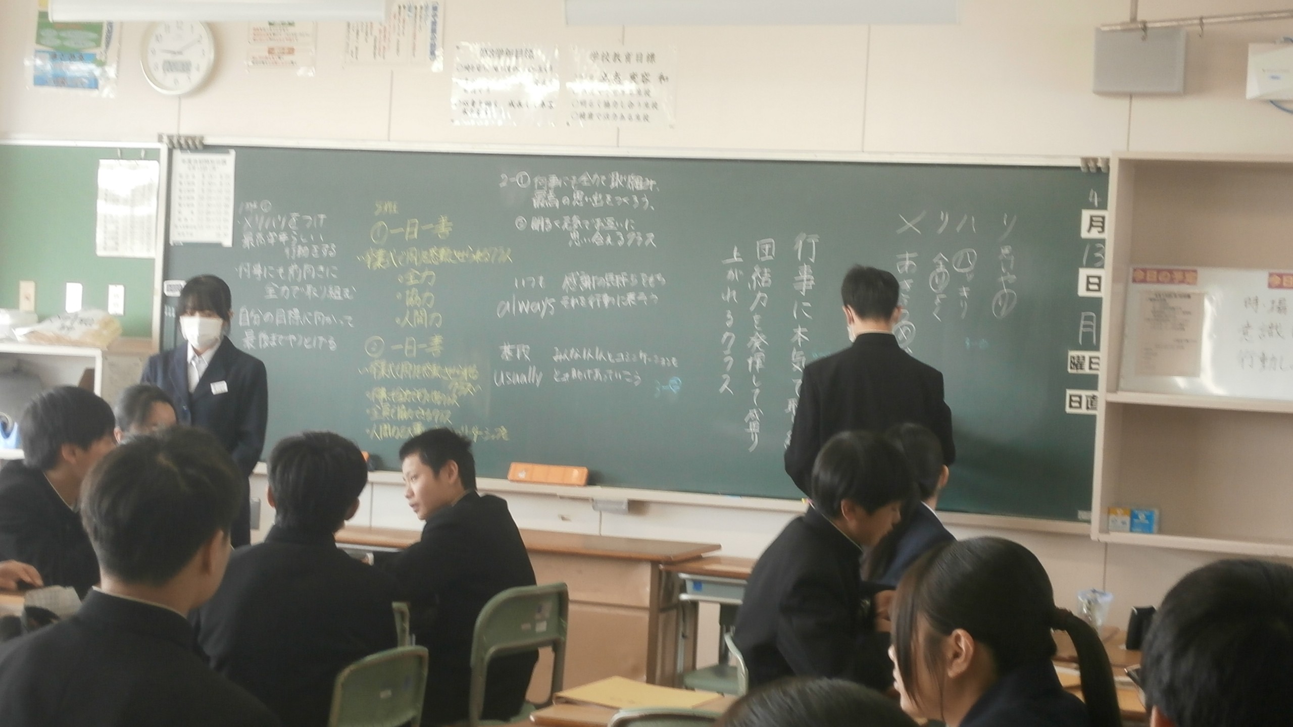 各学年の授業の様子です。学級目標を作成しているクラスが多くありました。
