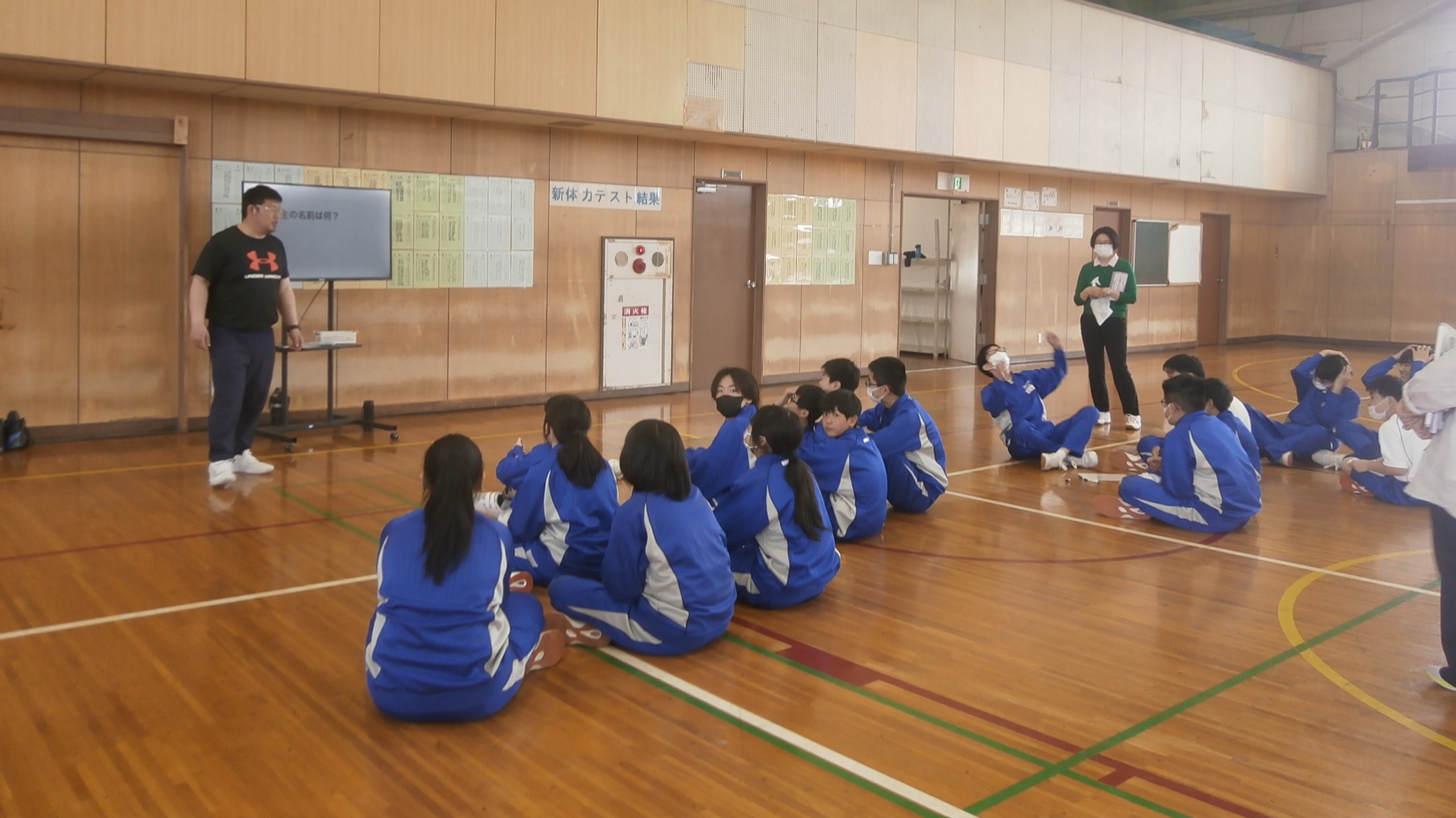 6,7,8,9組 体育館で活動(クイズに答えている場面です)