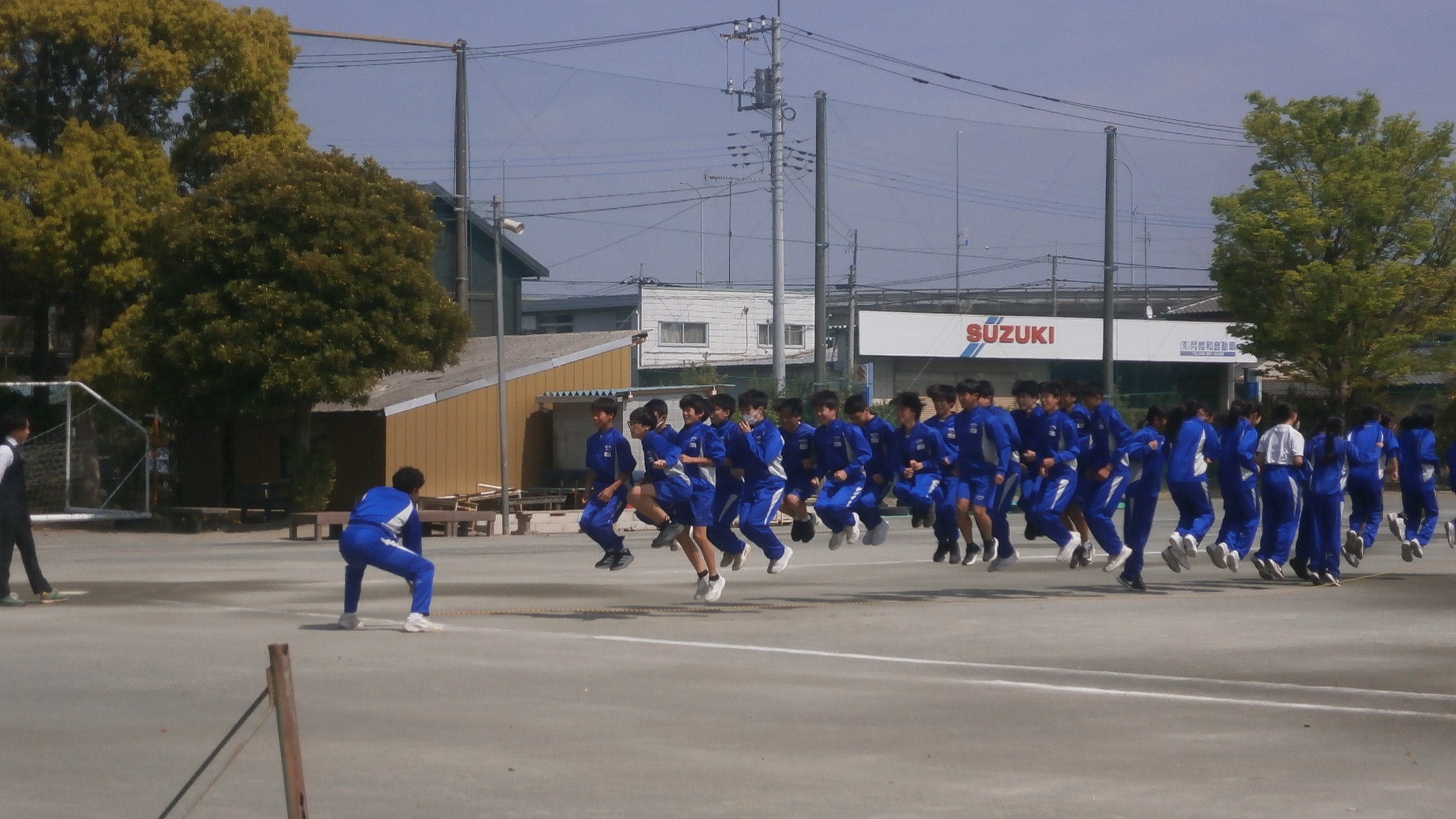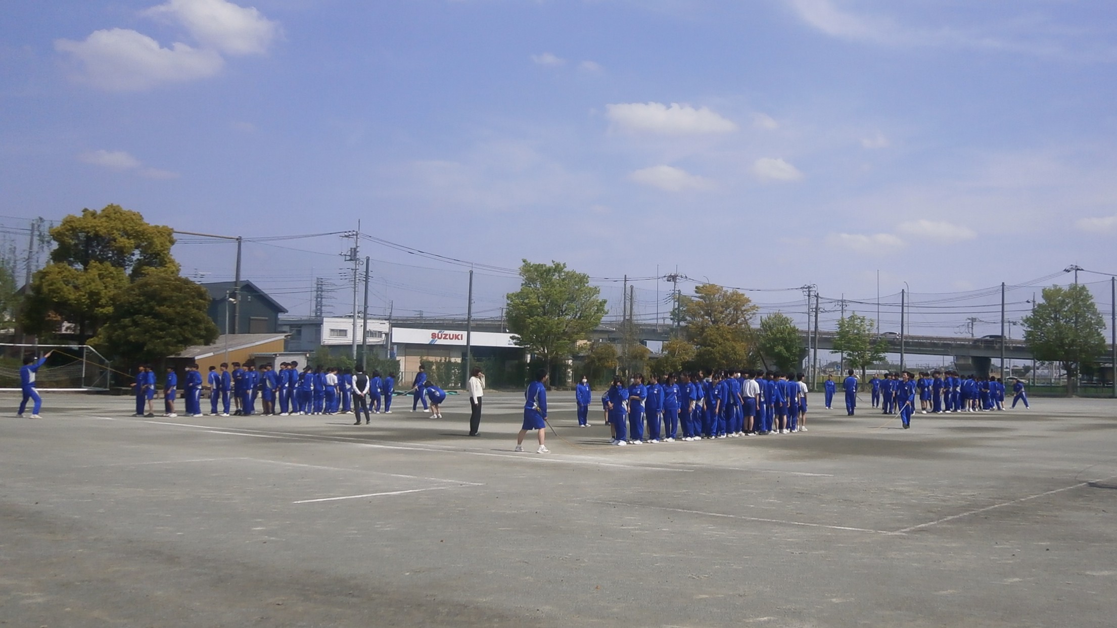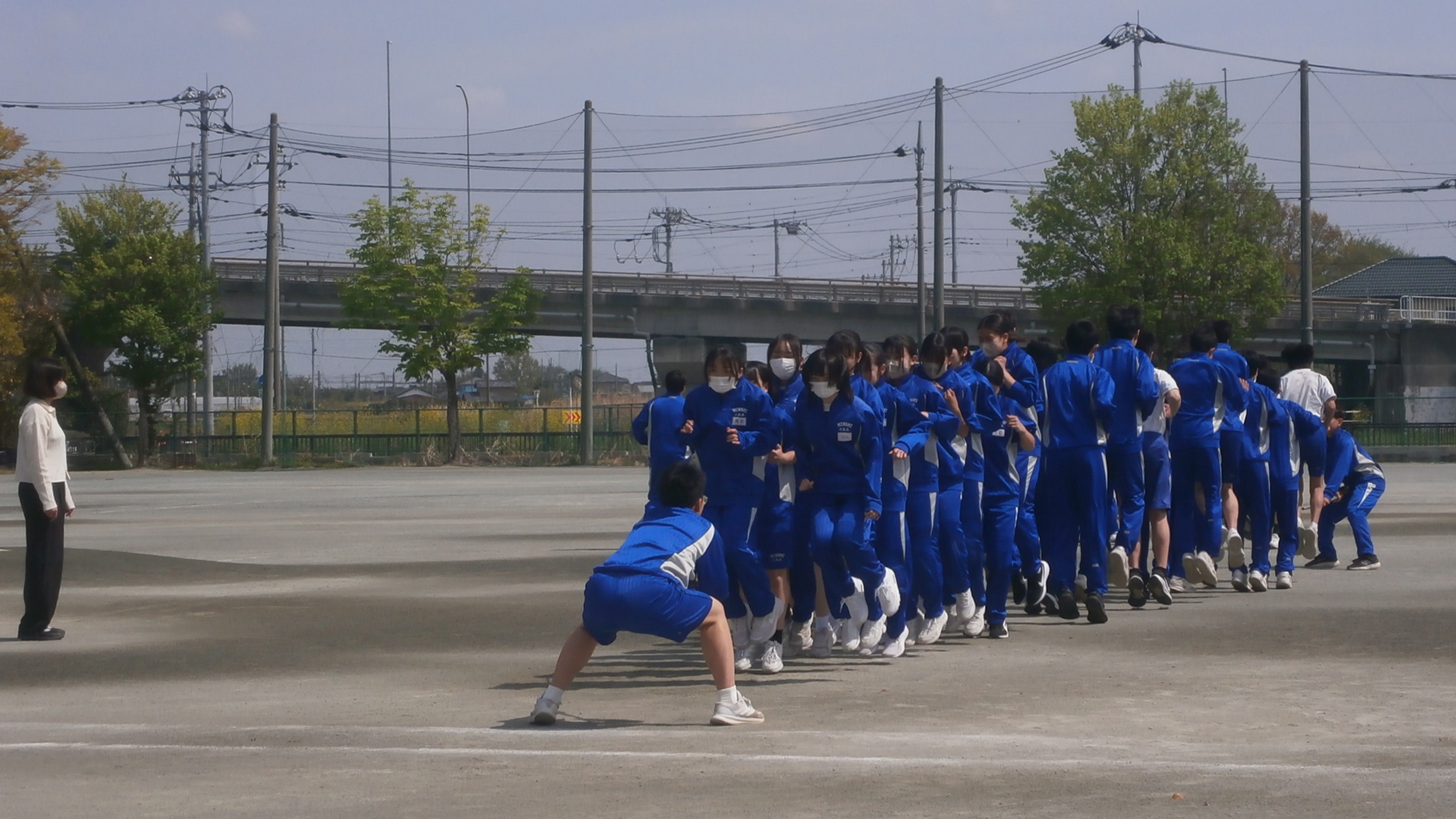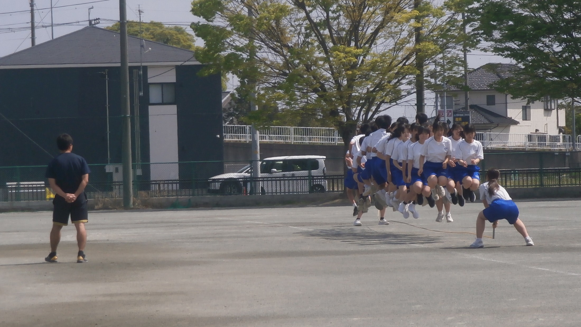 今日から体育祭に向けてのクラス練習(昼休みの自主練習)が始まりました。3年生が真っ先に校庭に出てきて、次に2年生が続いて、各クラスが担任に見守られる中、生徒たちが主体となって「なんちゅうJUMP」(長縄跳び)に取り組んでいました。本番は5月29日(金)です。まだ1か月半も先ですが、何事も準備(練習)が大切ですから!「目指せ努力の自己ベスト」ですね!!