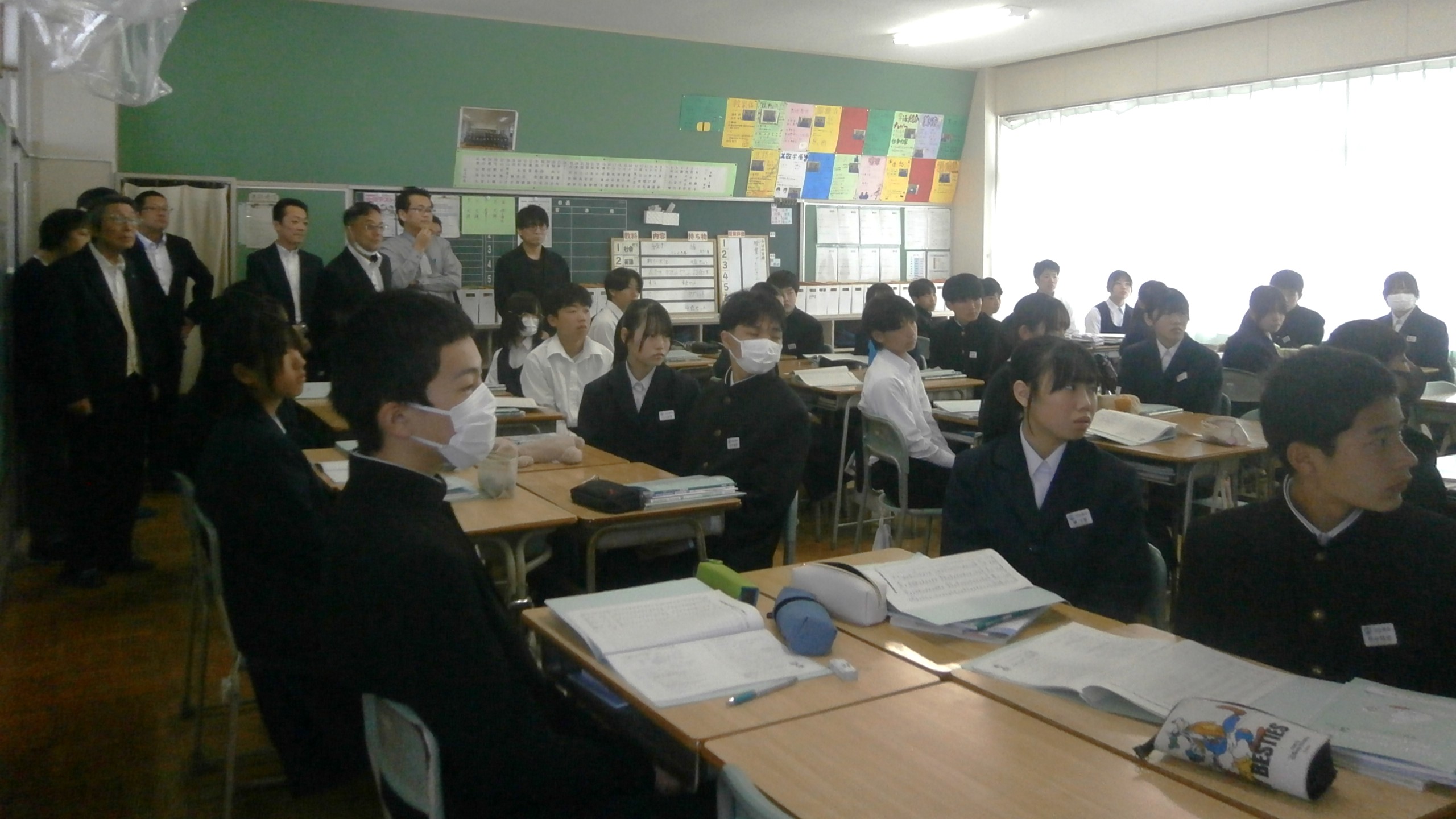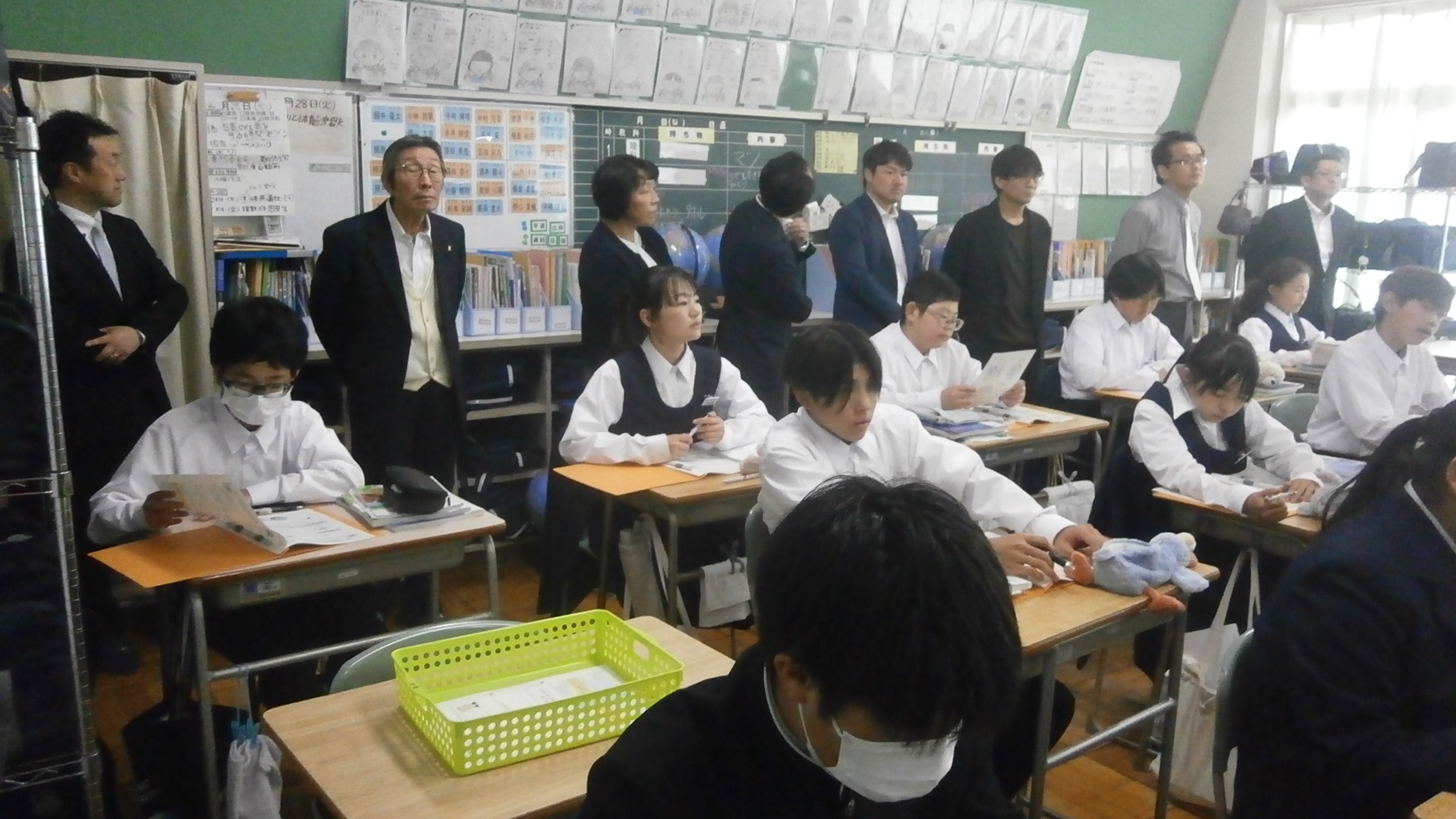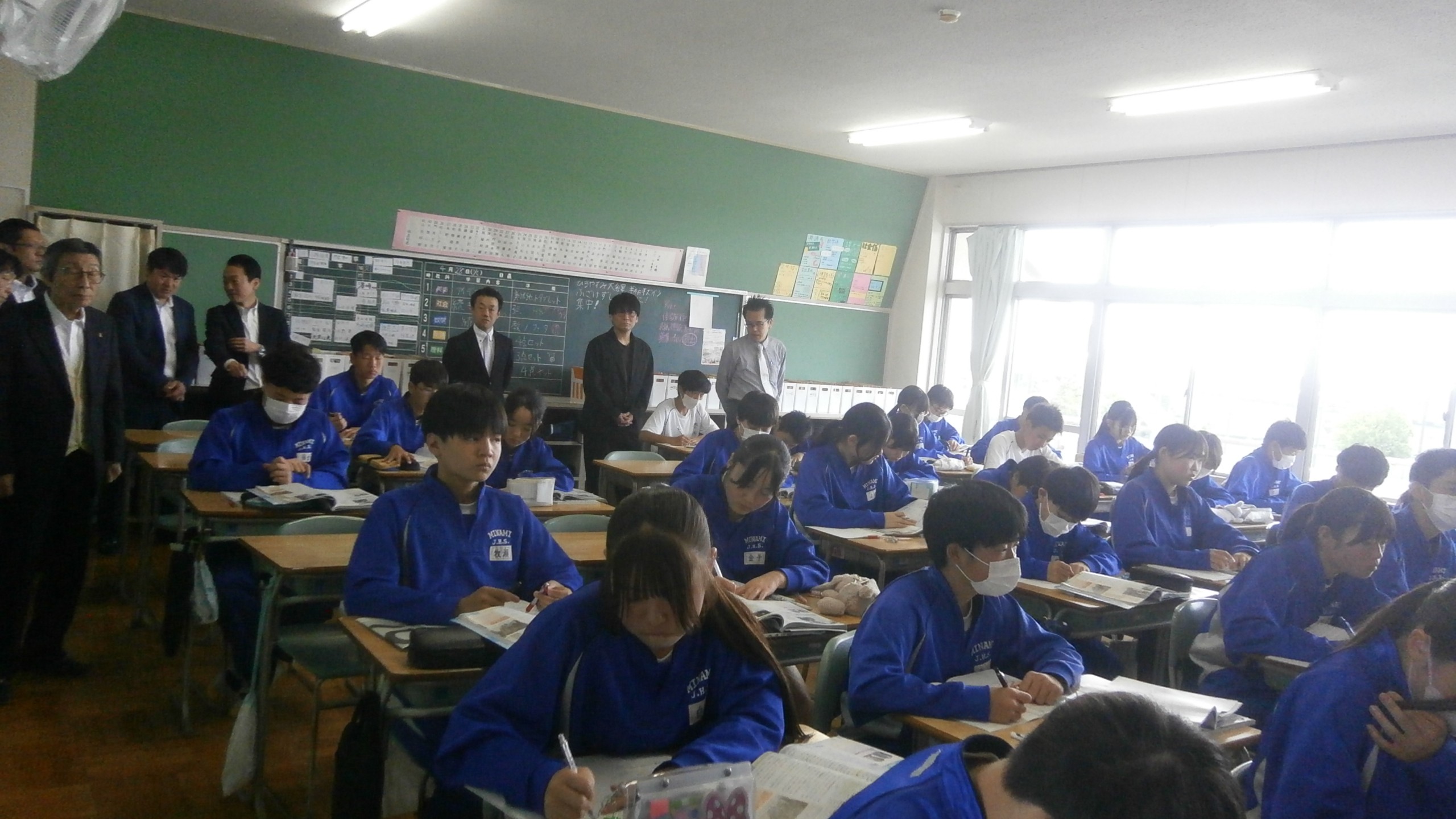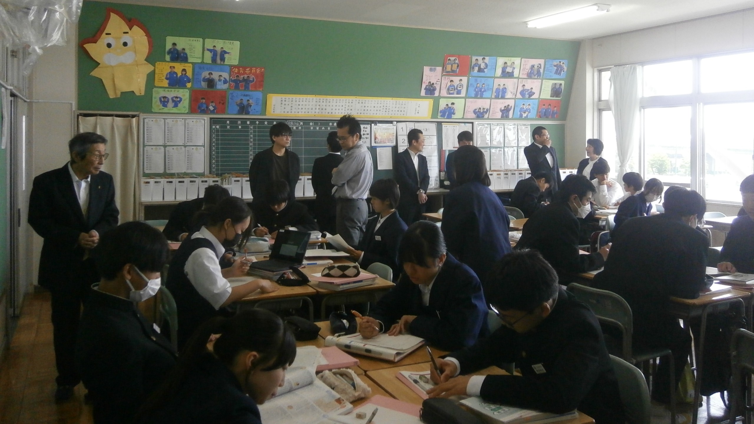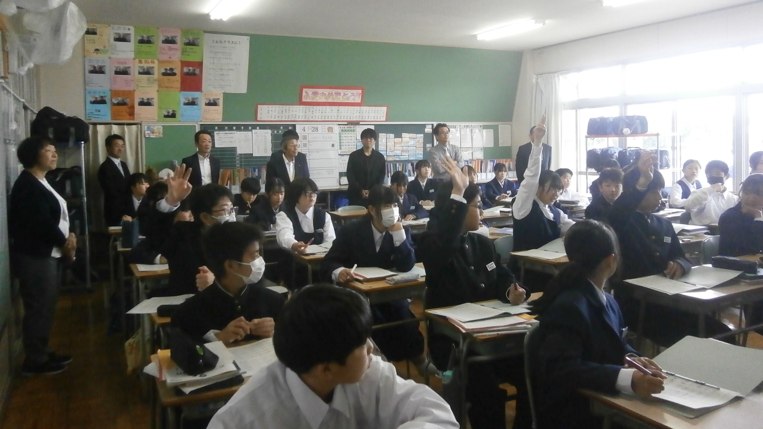 開会後すぐに授業参観。2年4組 国語 2年2組 英語
