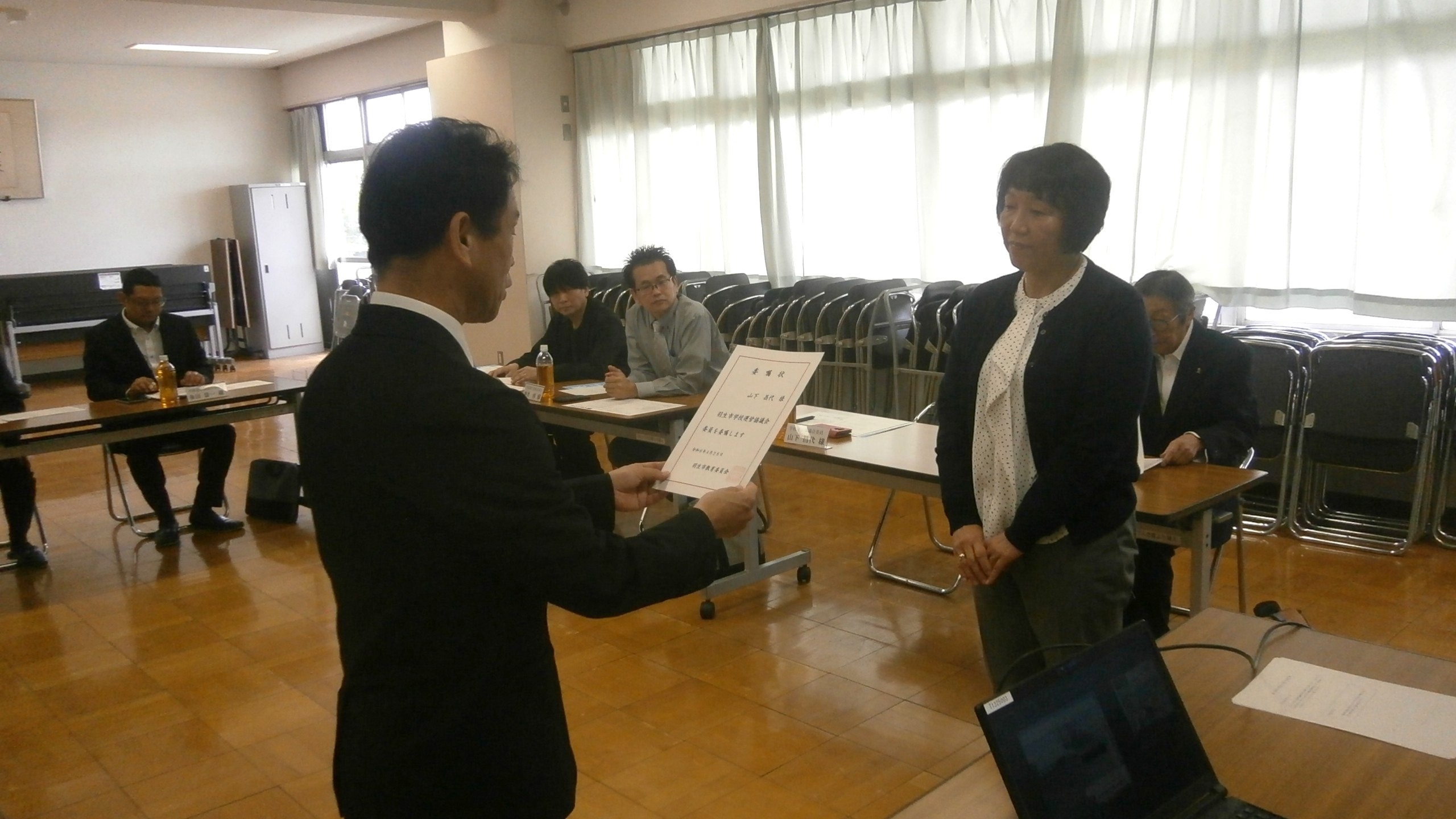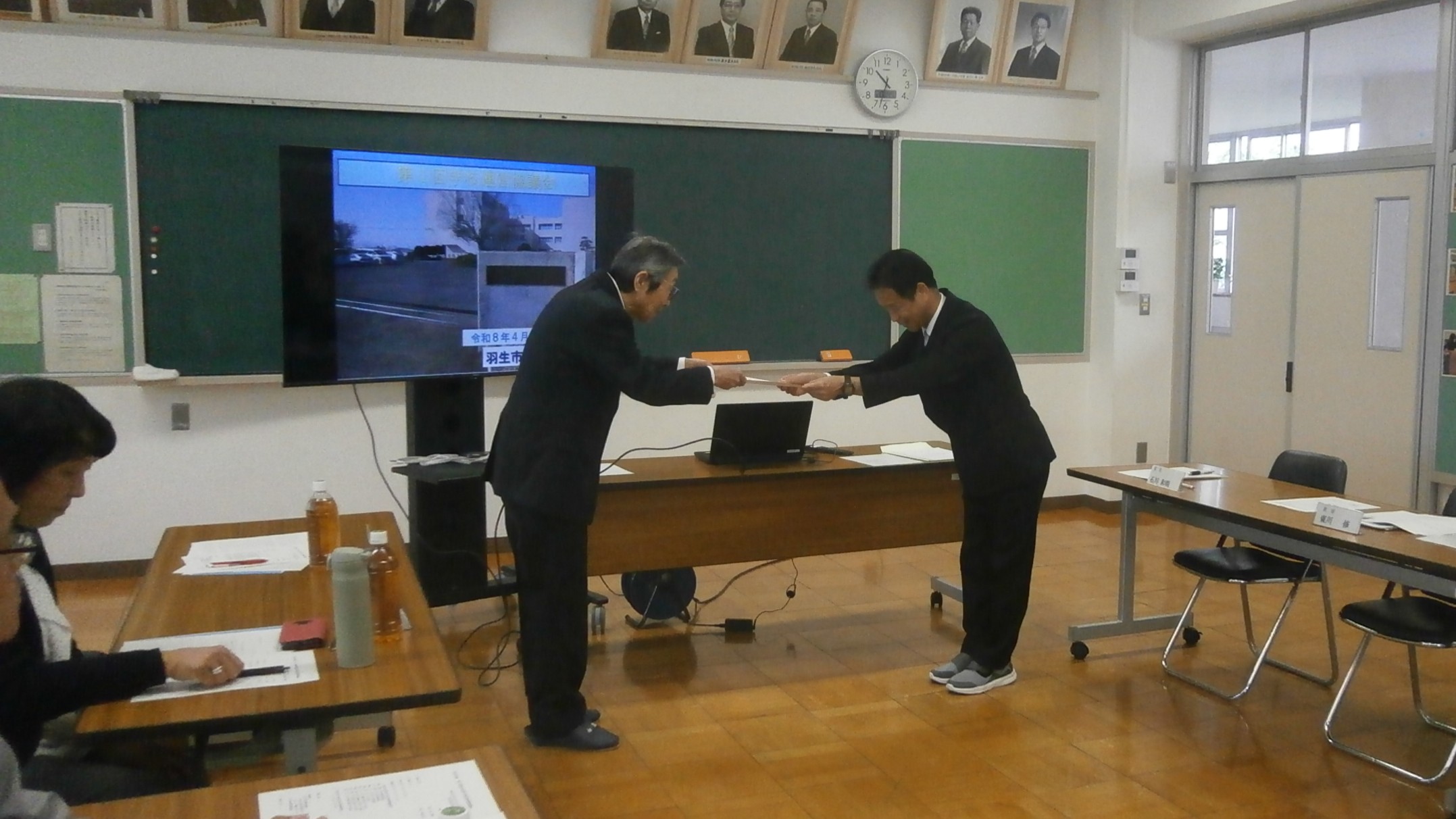 本日、今年度1回目の学校運営協議会を開催いたしました。授業見学、任命書授与、そして本校の学校運営に関して協議を行い、貴重なご意見等をいただくことができました。