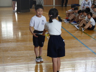2年生のお兄さん、お姉さんが、1年生を連れて、学校を案内してくれました。図工室や図書室などの特別教室を見て驚いたり、「広い」と感動したりしていました。(学校探検は、17日に実施しております。)