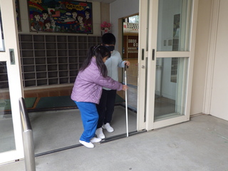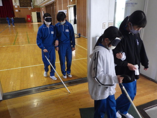 総合的な学習の時間に、4年生が車いす体験、白杖体験などの福祉体験を行いました。これまで調べていたことを実際に体験し、障害のある人の気持ちを想像しながら活動することができました。