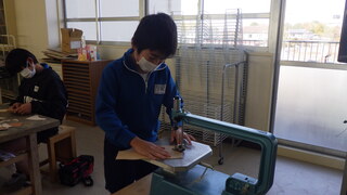 5年生が糸鋸を使って作品作りをしています。子どもたちの発想力には目をみはるものがあります。素敵な作品ができることを楽しみにしています。