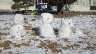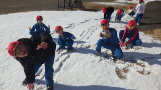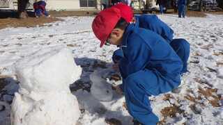 日曜日に降った雪が少し残っています。1年生が雪遊びをしました。友達と雪だるまをつくるなど、とても楽しそうでした。