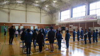 卒業式まであと二週間ほどとなりました。今朝は8時15分から卒業式練習を行いました。全体での呼びかけ練習を中心に行いました。声の出し方、タイミングなどを確認しました。また、今日の給食は「卒業お祝い献立」でした。卒業式が近づいてきたことを実感します。