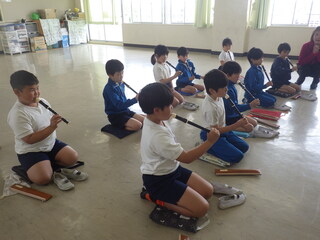 4時間目にリコーダーの先生をお招きして、講習会を開催しました。リコーダーの持ち方や演奏の仕方を教えていただきました。また、様々な種類のリコーダーの演奏もしていただきました。有意義な時間を過ごすことができました。