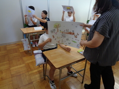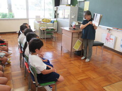 とても暑い日でしたので、今日は校庭での活動を控え、教室で楽しみました。