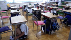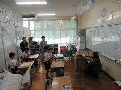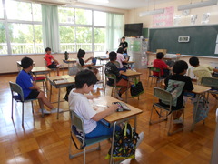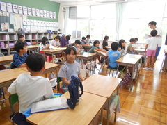 始業式の後は、学級で担任の先生やお友だちと過ごしました。宿題の提出や夏休みの出来事などを発表したり、学校図書館にいったりしました。久しぶりに仲間と会えて、児童の表情はとても明るいものでした。