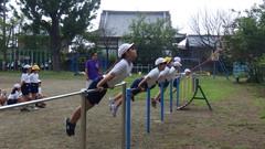 体力向上をめざし、ローテーション運動に取り組んでいます。