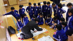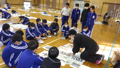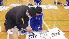 林 祥雲先生に書き初め指導をお願いしました。一文字ずつ書き方のポイントを御指導いただき、子供たちも真剣に練習に取り組みました。