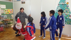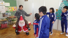 クリスマスが近いということで、ALTの先生がサンタクロースとトナカイになって、外国語活動を行いました。