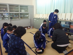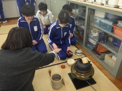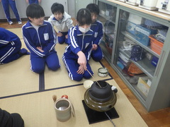 6年生が茶道体験を行いました。お点前を学び、みんなで楽しいお茶会となりました。
