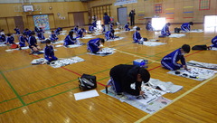 「書き初め競書会」を1,2年生は教室、3~6年生は体育館で行いました。
