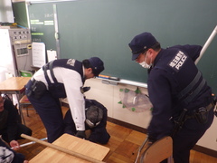 羽生警察署の署員さんに来ていただき、不審者対応訓練を行いました。