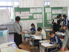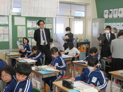 3年生が国語の研究授業を行いました。学習した「アリの行列」を生かして並行読書を行った内容を友達に伝える授業でした。一人一人、真剣に文章作りをしていました。